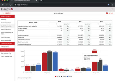 Finalyst Analisi Finanziaria è un software online (in cloud) che consente a commercialisti, consulenti, imprenditori, CFO e altri professionisti del settore di analizzare in modo veloce l’andamento ed il posizionamento di mercato dell’azienda al fine di orientare consapevolmente le scelte di business.